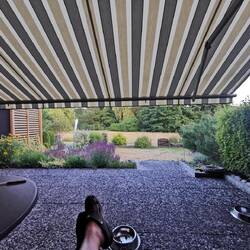 Nun brauche ich ja eigentlich nie Strom, aber bei 34 Grad freuen sich nicht nur die Hunde über die Klima, nachdem wir uns letzte Nacht todgescchwitzt haben.