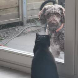 Katja hatte mich zu Beginn gefragt, ob die Hunde über die niedrige Gartentür abhauen würden, was ich natürlich verneint habe, weil meine Hunde nicht abhauen, wenn ich da bin.