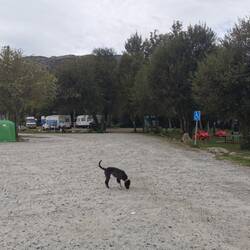 Auch wenn mich eine Nacht mehr auf dem Campingplatz nichts gekostet hätte, habe ich heute dort zusammengepackt, bin einkaufen gefahren und tatsächlich nur knapp 50 Kilometer weiter auf einem kleinen Stellplatz mit Blick in die Berge gelandet.