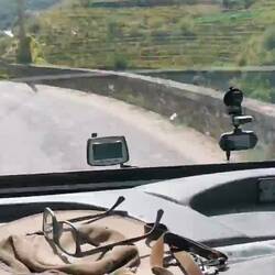 So fängt der Tag gut an: Runter vom Stellplatz, oben auf die Brücke über den Douro und noch gedacht, das die Straße ganz schön eng ist. Das ging bis zu dem Reisebus gut der mir entgegen kam. Dann musste ich zurück und da die Deppen hinter mir zu doof waren, um vorbei zu fahren, mussten die auch alle zurück. Was für ein Spaß.