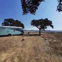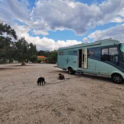 Da Hans den Fehler mit der Überspannung angeblich gefunden hat (Es war ein Relais für 2,50) und am Wochenende die Portugiesen auf der Wiese einfallen, habe ich den Platz gestern verlassen und bin auf einen bestens bewerteten, privaten Platz bei Palmela gefahren.