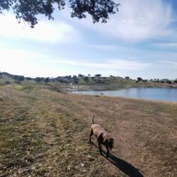 Die Nacht war herrlich ruhig und da ich weiter nach Merida will, wo auf dem besten Übernachtungsplatz Dienstags Markt ist, bleiben wir heute auch noch hier. Die Hunde freut es, da sie einfach rumlaufen und ins Wasser können.