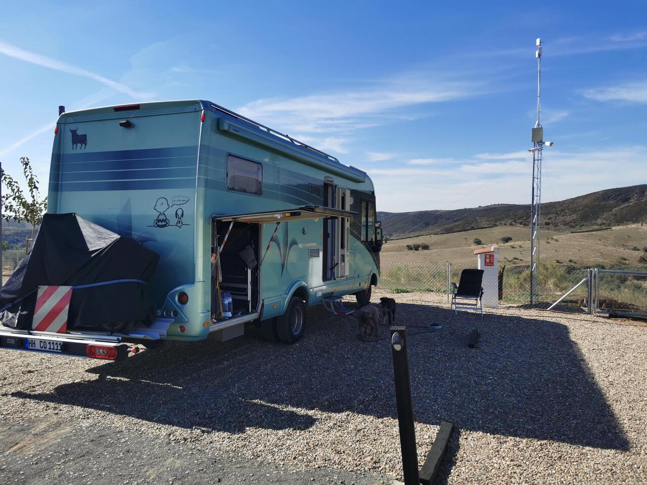 Nun also in Faro auf dem Platz, wo ich letztes Jahr schon stand. Alfred bringt meinen Akku auf Vordermann und morgen testen wir das System komplett durch. Den Hunden gefällt es hier zwar nicht, aber es,sind ja nur zwei Tage, bevor es weiter geht