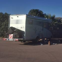 Erstens gutes Wetter, zweitens wriü man da, was man hat und vor allem kann ich meine Dreckwäsche in der Wäscherei abgeben und muß nicht an einem Supermarkt waschen.