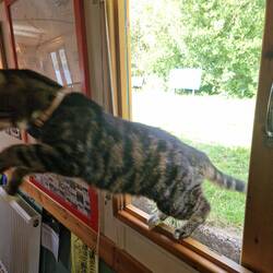 Over the two nights spent here Al had time to unwind and make a big fuss of Abby and Whiskers. He misses having cats and being favourite uncle to our two is the next best thing. Abby certainly perked up with his presence and he even got her to play with a wand toy!
