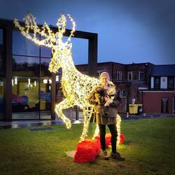 From the theatre we went straight to Waitrose car park and the start of the lantern parade. Volunteers were giving out free mince pies and mulled wine and children were attaching their handmade lanterns to sticks. Snow geese floated above the crowd on flexible poles and soon a giant snow queen puppet led the procession up the high street to the sound of drum beats from the marching band in Christmas fancy dress. It was an amazing atmosphere, with crowds lining the walkway and turning in to follow on behind. Everyone assembled in the square at Baron's Quay where a Radio Northwich DJ was broadcasting from the stage and lights bedecked a large Christmas tree ready to turn on. By this time we were both very cold. With fireworks due to accompany the lighting of the tree we made our way back to the furries so we'd be there to reassure them. The big switch on was broadcast on Facebook and we watched the fireworks from the boat while Leo and Tiger happily tucked into peanut butter licky mats. Thank you Northwich. What a way to kick off the Christmas season!