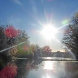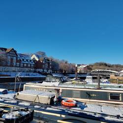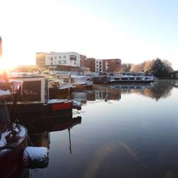 Once through Dutton Lock well moored on the lock landing and rested, giving the ice ahead a little more time to thaw. With our passage through Marsh Lock booked for 11:20am the following day we wanted to get a couple more miles under our belts, so 'cracked on' after an hour or so.