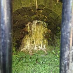 We moored for water just before the southern entrance and were given a safety talk by the tunnel keeper. Will shifted all the plants off the roof, turned on the navigation and headlights and tested the horn. Since parts of the towpath collapsed, there was no option to walk Tiger through. The keeper noted the two adults, two dogs and two cats on board and advised us that if there was a problem, we should sound the horn every 30 seconds until we hear the rescue boat giving three blasts in return. Only one of us was allowed to be outside, while any crew and all pets needed to be shut indoors. Life jackets were advisablebut not mandatory. As we were towing Little Rainboat, we'd go through by ourselves, not in convoy. We set off just before our booked time of 1pm. The keeper opened the barrier and tunnel door, then closed it behind us. Once inside, noisy fans started up, ventilating the 2676m length. They removed the smell of diesel but a sulfurous odour intensified the deeper we got. Vicky camped out on the bed with the two dogs and Whiskers. She'd prepped calming music, a calming spray, cheese treats, honey and peanut butter licky mats as well as Tiger's snuggly bed to try and keep her calm. Thankfully she coped reasonably well and Will did a super job of keeping to the middle so there weren't any loud bangs. The only scrape came when he tried to avoid a massive hunk of rock sticking out into the water. We reached the north portal in just under 40 minutes but had to travel through a lock before we found a suitable place to moor near Kidsgrove.