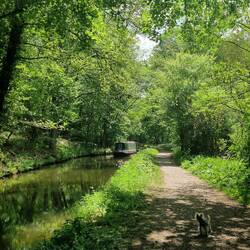 Will worked hard and managed very well. Leo behaved beautifully and enjoyed riding on Vicky's lap, exploring the area around the locks and hopping on to Rainboat when there was a longer distance between the locks. And Tiger? She enjoyed herself too! She stuck to Vicky's side while at locks, trotted behind on the towpath and rode on her lap when the locks were further apart. We may not be able to do this all the time but we were so relieved that it worked well today 😊