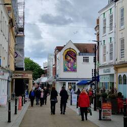 As is often the way, Will went to e explore the nearby high street while Vicky nested and rested with the furries. After Gloucester's wide pedestrianised streets, the pavements seemed narrow and the seemingly endless stream of traffic noisy. Above the boutiques and butchers, charity shops and coffee stops, hung an array of medieval banners representing those who fought here in the 1471 War of Roses. Contemporary and unremarkable buildings were interspersed with olde worlde timber frame structures.