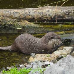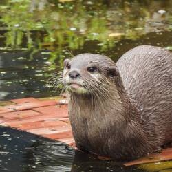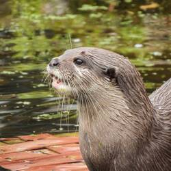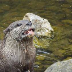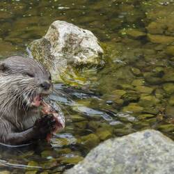 Several school groups were already stationed at the arc of seating around the perspex enclosed otter habitat. Sam and Tilly, the Asian Small Clawed Otters knew what time it was and were out on floating platforms hissing and screeching excitement. They were a joy to watch as the staff member threw pieces of fish to them, while giving a little talk about the pair and otters in general. Unfortunately it was cut short as one of the visitors collapsed. This was dealt with very professionally. The first aider was radioed and the crowd quietly dispersed. We later saw the visitor sitting up and talking, so hopefully they recovered well.