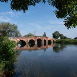 Just upriver of a beautiful 16th century arched red sandstone bridge, the mooring rings were adjacent to a picnic area with small car park. It being a heat wave, dozens of people of all ages visited during the day, either by car or from other places on the river with canoes, kayaks and SUPs. Many people, including us, just took to the water in their swimwear.