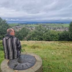 Hoping for a good view of the city we climbed a road called Shear Bank that lived up to its name. We passed a mosque where children could be seen playing football matches, then cut through Corporation Park to reach The Tank Toposcope. It marked the site of a 50,000 gallon iron water tank, used to supply the houses near the top of the hill between 1897-1978. The view over Blackburn city was mostly obscured by trees and nearby houses but the next valley opened up beneath us and we reckoned that you could see the Blackpool tower and sea on a clear day.