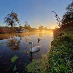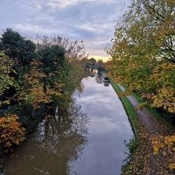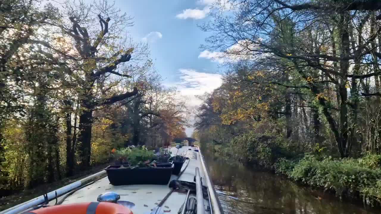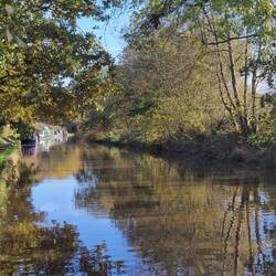 Boats at permanent moorings lined the opposite bank bow to stern, beyond which were fields with sheep and a few horses. We claimed a spot on the towpath close to a cluster of country cottages reached by a long driveway. It was a poplar place for dog walkers and well away from any road. Mature Oak and Beech arched their autumn colour across the water in one direction, creating a wildlife haven where we spotted Kingfishers, a Nuthatch and Long Tailed Tits.