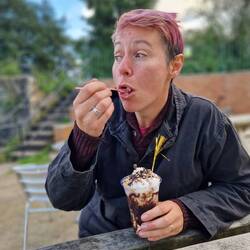 Further afield was Ellerbeck Boatyard and the Boatyard Bus Cafe; a double decker kitted with seating inside and out. The two people running it were so friendly and fell in love with Leo. It turned out one of them lived on the boat we'd moored opposite! Vicky's stepmum Sarah came up trumps when she recommended Frederick's Ice Cream Parlour, a short cycle ride away that had the biggest selection we'd ever seen. Vicky took great delight in their vegan sundaes with a choice of flavours and toppings.