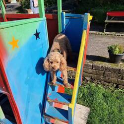 There was little to no phone or internet signal but there were pretty rural views outside Rainboat's windows. We took a stroll into the village and had a cuppa and cake at No.18 The Park Café. It didn't look very exciting from the outside but it was homely and chique inside with warm white lights rustic wooden tables and soft coloured stoneware crockery. The only table not reserved was the large one in the centre so we settled ourselves down with Tiger and Leo and Will encouraged another couple with a black lab cross to join us. We soon got chatting; Paul was a retired GP and Yvonne an illustrator. They lived with their rescue dog Poppy at nearby Audlem. Leo quickly stole Yvonne's heart, as he tends to do and they ended up inviting us to visit them when we passed through Audlem in a few months' time!