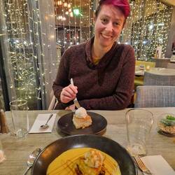 Trees lined our mooring spot without blocking the light so it was a pleasant spot to spend a few days. For lunch on the second day e walked along a busy main road to reach The Royal Oak, about which Will had read good reviews. We weren't disappointed. Vicky worried when she couldn't find anything vegan, but the worry turned to delight when they produced a seperate vegan menu. It was the best meal we'd had out in quite a while!もっと詳しく