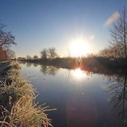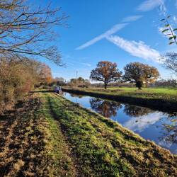 The mooring was blissfully quiet with cropped wheat fields stretching out on either side. Fieldfares flitted between hawthorn hedges and a buzzard surveyed its surroundings from a telephone wire. A few people passed us on the muddy towpath and unfortunately for the dogs a bird scarer boomed periodically from a nearby farm.もっと詳しく
