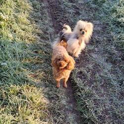 Sorry, no outdoor pics but here are Leo and Lilly snuggling inside where it was warm and dry!もっと詳しく