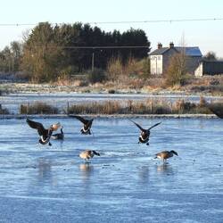 A booklet we found at an information stand on the towpath had a map of the trails leading through the mosses. It told of the rare plants, insects and birds found on site. When Vicky took a photography walk amongst the winter wonderland it was eerily quiet and still. The plants were encased in hard ice and any creature with sense was doing what they could to keep warm and conserve energy.