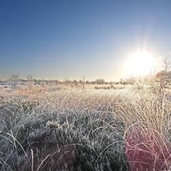 The cold spell still had us in its grasp. With a clear sky overnight temperatures plunged to -6.7°C on the first night and -8.3°C the second. We woke to scenes of incredible beauty with thick white frost crystals clinging to every frond of grass and fringing the those leaves that still clung stubbornly to their branches.