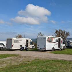 Nach einer schönen Fahrt mit kurzer Pause, kommen wir kurz nach drei Uhr am Stellplatz an. Und wir haben Glück, obwohl der Platz sehr voll ist, erwischen wir noch ein schönes Plätzchen direkt anLæs mere