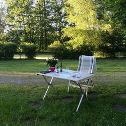 Am womo, Badehose und ab an den Strand, nun, ganz gemütlich, ein Glas Rose und Rotwein. Der krönende Tagesabschluss.