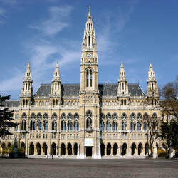 L’Hôtel de Ville érigé de 1872 à 1883 par Friedrich von Schmidt, ancien architecte de la cathédrale de Cologne, est l’édifice non religieux le plus remarquable de Vienne en style néogothique.