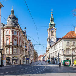 Entre 1784 et 1809, les remparts sont démantelés, et au xixe siècle de nouveau quartiers sont créés, aux vastes places et rues rectilignes. La ligne de chemin de fer Vienne-Trieste (348 km) est créée, avec arrêt à Graz.