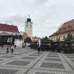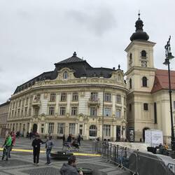 Visite de la ville de Sibiu sur le trajet pour le camping de ce soir. On stationne au parking de la gare : 45.8002, 24.1604. 0,20€/h de 8h à 22h.