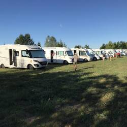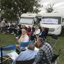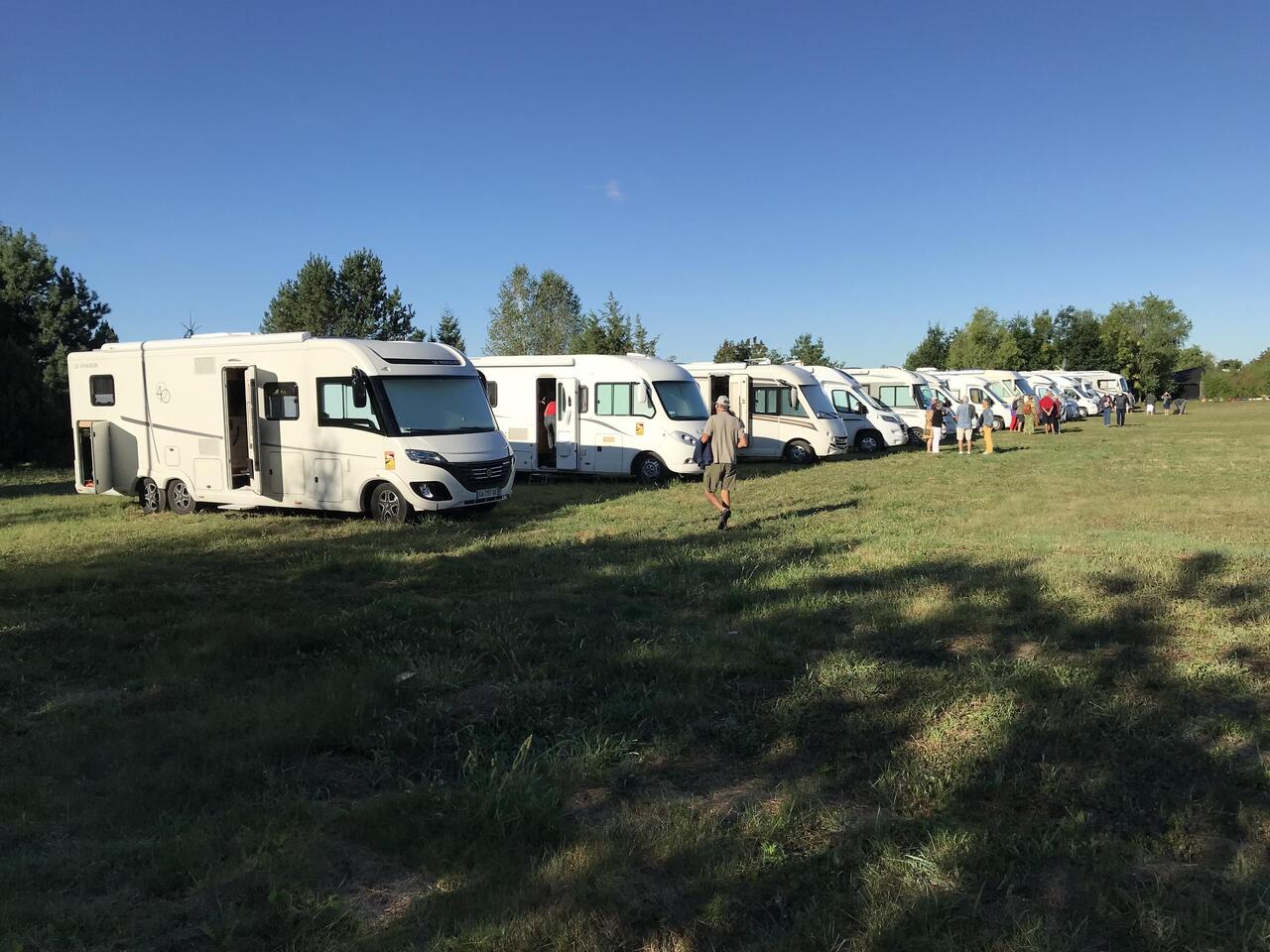 Notre rendez-vous pour le début du voyage en Roumanie. Nous sommes au camping avec les 18 autres camping-car qui vont participer au voyage. Ce soir nous avons eu une petite réunion apéritive pour fixer les modalités du voyage et faire connaissance avec les autres.