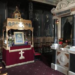 L'église de la Très-Sainte-Trinité fut construite à la lisière du Wienerwald sur la montagne Sankt-Georgen entre 1974 et 1976 d'après les plans du sculpteur autrichien Fritz Wotruba. C'est pourquoi elle est souvent appelée église Wotruba. Les murs extérieurs de l'église sont formés de 152 blocs de béton modulaires agencés de manière irrégulière, ce qui offre à l'église une façade unique.