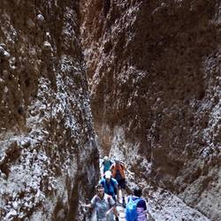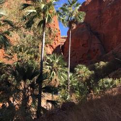 Nun ist es endlich soweit! Nach einem leckeren Picknick im Nirgendwo und bei 40 °C im Schatten wandern wir langsamen Schrittes und mit reichlich Wasser im Rucksack in die Echidna Chasm (=Spalte). EinLæs mere