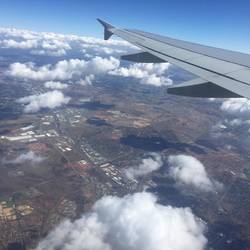 Schon vor der Landung sehen wir - nichts 😉. Der Flughafen von Windhoek liegt wirklich mitten im Nirgendwo. Warum der internationale Flughafen der Hauptstadt Namibias soweit entfernt von allem liegt - keine Ahnung. Vielleicht soll hier ja mal eine Stadt entstehen und sie haben mit dem Flughafen angefangen, anders als bei uns: da gibt es eine Stadt - und der Flughafen 🤓?!