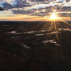 Zu sechst wollen wir am späten Nachmittag das Okavango - Delta von oben sehen! Jabu bringt uns zum kleinen Flugplatz in Maun, wo wir eine Cesna besteigen und die ganze grüne Pracht aus der Vogelperspektive anschauen. Wir sehen die riesige Fläche des Deltas, die Wasserläufe und -löcher, die Inseln - einfach die ganze Schönheit!: https://1drv.ms/v/s!AiUv8teodO-roRb7Bog2cOXIdGC7