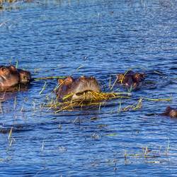 Am Nachmittag steigen wir auf ein Boot und machen eine Safari auf dem Chobe River, der ein Stückchen weiter in den Sambesi fließt, sich die Viktoria Fälle runterstürzt und dann in Äthiopien im Indischen Ozean endet, um die Tiere im Wasser und am Flussufer zu beobachten.