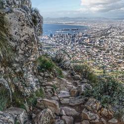 Endlich zeigt sich die Sonne und sofort ist Wandertag 😃! Unser Ziel ist der 669 m hohe Gipfel des Löwenkopfes, der Berg gleich neben dem gewaltigen Tafelberg und mit ihm, dem Devil's Peak undLeer más