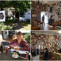 Nun gehts wieder auf die Straße Richtung Garden Route, die wir in Swellendam erreichen. Hier machen wir im laut Reiseführer 'stimmungsvollen' Old Goal Coffee Shop Mittagspause. Es ist total urig, wegen schönstem Wetter sitzen wir im Garten und essen Roosterkoek - ein typisch afrikanisches Brot, gegrillt über Holzkohle. Zusammen mit Butter, Käse oder Hühnchen - lecker 😋! Wir fühlen uns pudelwohl, genießen die entspannte und europäisch angehauchte Atmosphäre. Es ist die perfekte Vorbereitung auf die Heimkehr, obwohl wir Afrika schon fest in unser Herz geschlossen haben!
