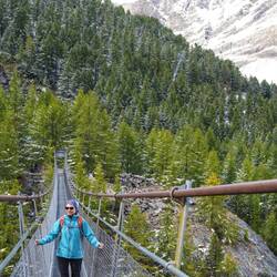 Über Furi gelangen wir zur schönen Hängebrücke. Sie schwebt 90 m über dem Tal und ist 100 m lang. Das ist uns natürlich etliche tolle Fotos wert. Sooo schön hier!