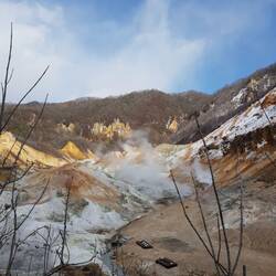 Noboribetsu est connu pour sa vallée volcanique, dites Jikogudani: La vallée de l'enfer.