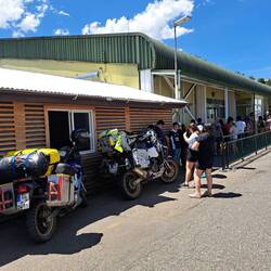 Es wird Zeit zu gehen. Achim verzichtet auf das Rafting. Dem Magen geht es besser aber eine kleine Erkältung macht noch zu schaffen. Achim hat einen Termin am Dienstag bei Enrique in Valdivia bekommen. Wartung und Reifenwechsel. Wir fahren die Red Interlagos Strecke. An der Kreuzung an dem ich damals den LKW-Fahrer traf, dort schließt sich der Kreis um den See. Es geht nach Entre Lagos. Von dort zum Parque Nacional Puyehue. Die Strecke ist teilweise sehr kurvig und abwechslungsreich. Und es wird immer wärmer. Damals gab es für mich 3 Optionen um in den Süden zu reisen. Die Insel Chiloe hatte ich ausgelassen um diese dann auf umgekehrten Wege doch zu bereisen und neue Freunde zu finden. Der Weg mit der Fähre endete in Chaiten mit Kupplungsschaden. Also ziehe ich Option drei, Argentinien. Zusammen mit Achim zu den 7 Seen. Er war schon einmal dort und immer noch fasziniert um sie nochmal zu besuchen. Danach werden sich unsere Wege trennen. Aber erstmal ausreisen. Grenzwechsel in Europa ist kaum erwähnenswert. Hier aufwendig. An einem Häuschen einen Zettel in Empfang nehmen. In der Schlange anstehen. Migrationsbehörde. Stempel abholen. Fahrzeugausreise bestätigen lassen. Zettel abstempeln lassen. Motorrad wird nicht weiter untersucht. Am nächsten Häuschen Zettel abgeben. Weiterfahren. Die Strecke hat genausoviele Kurven wie Kraterförmige Schlaglöcher. Wir halten trotz der herrlichen Umgebung nicht an. Schließlich kommen noch die Einreiseformalitäten. Zettel in Empfang nehmen. Stundenlanges Schlange stehen. Migrationsamt. Der Beamte hat sogar ein paar Worte auf deutsch für mich. Achim Aussage wo wir unterkommen und hinwollen werden mit meinen abgeglichen. Dann Einreisepapiere für Blue am nächsten Schalter. Wieder lange Schlange und dann gehen die Lichter aus. Alles out of order. Noch länger warten. Irgendwann gehen die Lichter wieder an. Applaus. Endlich die Papiere. Zettel abgeben. Und weiter. Es ist schon Abend. Der erste Campingplatz gefällt nicht. Zurück zur nächsten Stadt. Einkaufen. Zum Glück hat Achim noch ARG-Pesos. Direkt dort ist ein Campingplatz. Er ist fast voll. Ferienzeit. Wir bleiben. Alles ist sauber und einladend. Nochmal zu Fuß in den Ort. Abendessen im Restaurant. Morgen geht es weiter.もっと詳しく