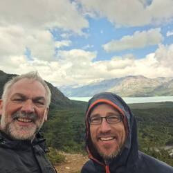 Heute ist das Wetter richtig gut. Es bleibt den ganzen Tag trocken. Zeit die gesamte Wäsche in die Wäscherei zu bringen. Nachmittags kann ich sie wieder abholen. Auch das Zelt muss nochmal nachgetrocknet werden. Die Wanderschuhe wollen endlich Einsatz zeigen. Ziel ist eine ausgiebige Wandertour zur Flagge am Gipfel des naheliegenden Berges. Ich bin froh das passende Outfit anzuhaben. In Motorradmontur und Stiefel oder Turnschuh wäre es nicht machbar gewesen. Die Tour ist als Mittelschwer eingestuft. Und hat seine Höhepunkte. Teilweise sind Hilfsseile befestigt. Ich treffe ein älteres Ehepaar aus Ulm, Unglaublich. Sie haben in Filsum gelebt. Kennen das Emsland und Ostfriesland. Ihre 3 Kinder sind in Chile geboren, hier haben sie gelebt. Die Aussicht oben am Berg ist überwältigend. Ein fantastischer Überblick. Deutlich sind noch die Spuren eines Waldbrandes zu sehen. Ursache war die Leichtsinnigkeit eines Touristen. Beim Abstieg lerne ich Dominik kennen. Er kommt aus der Region zwischen München und Salzburg. Auch er ist begeistert wie die Menschen hier im.Einklang mit der Natur leben. Es gibt wirklich kaum Müllverschmutzung und wilde Müllkippen. Auch die Vielzahl und Abwechslung der Berge überrascht ihn. Am späten Nachmittag habe ich die große Tour beendet. Ich sollte eine Dankesemail an den Baron schicken. Mit meinem künstlichen Kniegelenk kraxel ich hier durch die chilenischen Berge. Vor einigen Jahren unvorstellbar. Nochmal kurz einkaufen, Wäsche abholen und zurück zur Unterkunft. Heute Abend ist französische Küche. Gestern wurde überwiegend deutsch gesprochen. Zwei Jungs aus Hamburg sind auch dabei. Ich packe und organisiere meine Taschen neu und zieh mich zurück in den ruhigen Aufenthaltsraum. Das wohlverdiente Feierabendbier schmeckt nach der Tour richtig gut und verhindert hoffentlich einen Muskelkater.もっと詳しく