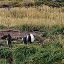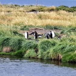 Ich war früh aufgestanden. Denn es war leicht windig und der Wind hatte das Zelt getrocknet. Bevor es wieder regnete waren meine Sachen gepackt. Eine Einladung zum Frühstück konnte ich natürlich nicht ablehnen. Zusätzlich bekam ich noch Tipps wenn ich in Tolhuin und Ushuaia sein sollte. Eine herzliche Verabschiedung und los ging es zu den Königspinguinen. Die Station wird privat geführt, es gibt keine öffentlichen Gelder. Man legt Wert darauf dass die Tiere ungestört bleiben. Fernrohr und Fernglas stehen deshalb bereit. Für mich gab es vom Tourguide eine extra englische Version. Ca. 1 Stunde dauerte die Besichtigung. Die Pinguine waren vom Fuchs bedroht und man hatte es geschafft diesen von hier fernzuhalten.