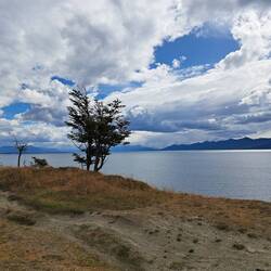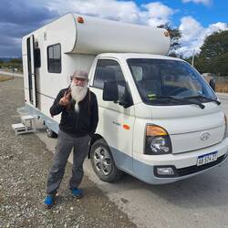 Die letzte Etappe steht bevor. Noch zweihundertzwanzig Kilometer dann haben Blue und ich unser Hauptziel erreicht. Doch erst mal Frühstück und einen starken Kaffee. Verabschiedung von den anderen. Wir fahren noch einmal in die Stadt zu Western Union zum Geldwechsel und zum Tanken. Ein Motorradfahrer heißt uns in Argentinien willkommen. Bestes Motorradwetter. Trocken. Asphalt und nicht zu heiß. Die Hälfte der Strecke bis Tolhuin ist Landschaftlich unspektakulär. Ich fahre in den Ort hinein und suche eine Panaderia und bestelle mir Fracturas. Das war der erste Tipp von Veronika. Hier in Tolhuin soll es die besten geben. Vor der Bäckerei steht eine Royal Enfield Himalayan als Retrobike. Hat was finde ich. Ab jetzt wird es auch Landschaftlich interessanter. Ich halte an einem Parkplatz wo ein kleines Wohnmobil steht. Als der Besitzer aussteigt traue ich meinen Augen kaum. Ist Billy Gibbons von ZZ Top auf Tour? Nein, sein Name ist Toto. Er lädt mich in seinem Wohnmobil ein und bei Kaffee und Keksen fangen wir an zu plaudern. Im besten Hand- und Fußspanisch als ob wir uns schon Jahre kennen. Es war angefangen zu nieseln. Als es aufhört verabschieden wir uns. Vielleicht sieht man sich wieder schließlich kommt er aus Ushuaia und fährt Harley. Noch eine Kurve und JAAAAAA, WIR HABEN ES GESCHAFFT. Das Tor zur Antarktis erreicht. U S H U A I A. Ich schnapp mir den nächstbesten für ein paar Erinnerungsfotos. Wer gedacht hat am Ende der Welt steht ein kleines Indianerdorf mit ein paar Einheimischen, der sieht sich getäuscht. Ich gönne mir für die Tage ein Apartment. Maca hat es mir empfohlen und den Kontakt hergestellt. Eigentlich viel zu teuer aber ich bekomme einen Spezialpreis und kann unmöglich ablehnen. Es fängt an zu regnen und hört auch nicht mehr auf. OK, Supermarkt um die Ecke. Preise für Lebensmittel im Gegensatz zu Patagonien Chile ein Schnäppchenmarkt. Ich mach mir Arepas mit Bananenfüllung. Nicht schlecht fürs erste Mal. Ich freu mich einfach und lass die Reise Revue passieren. Einfach GROSSARTIG.Baca lagi