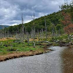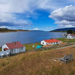 Dieser Vormittag begann mit herrlichem Sonnenschein. Anstatt wandern sollte es eine Fahrt zur Küste des Beagle-Kanals sein. Es geht durch Südbuchenwälder bis sich die Straße zur Estancia Harberton Ranch durch herrliche offene Landschaft windet. Es war die erste Farm in Feuerland, Argentinien. Die Estancia hat ein schönes Cafe mit leckeren Kuchen. Von hier starten auch die Boote zur Insel der Pinguine. Ich mach es mir im Cafe gemütlich und schaue entspannt auf den Beagle-Kanal. Es gab noch einen Tipp von Veronika. King Crab essen. Aber anstatt in Ushuaia gibt es hier ein Fischerdörfchen mit mehreren Restaurants. Puerto Amanza. Diesen Tipp hatte ich mehrfach gehört. Gegenüber liegt Puerto Williams. Ich finde ein geöffnetes Restaurant. Der Besitzer war schon 2 mal in Deutschland gewesen. Er mochte es. Besonders den Münchner Hauptbahnhof. Ich verzichtete auf die Version Werkzeug und bestellte die mit Käse überbackene Version. Der Tag war einfach verflogen und es wurde Zeit für die Rückfahrt. Dazu setzte pünktlich der Regen ein. Hörte auch nicht mehr auf an diesem Abend. Wir sind am Ende der Welt und 4 Jahreszeiten normal. Zum Glück hatte ich eine feste Unterkunft und eine heiße Dusche zum aufwärmen. Mal sehen was das Wetter morgen macht.Baca lagi