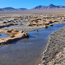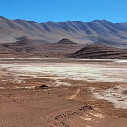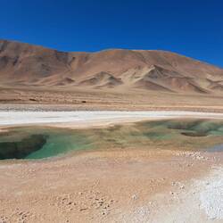 Die letzte Etappe unserer Salzwüstenrallye führt uns ins 200 km entfernte San Antonio de los Cobres. Doch zunächst geht es aus dem Ort zu den türkisfarbenen Lagunen. Die Meeresaugen von Tolar. DasEn savoir plus