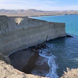 Heute ist es genau 3 Monate her als sich zum letzten Mal der Hausschlüssel im Schloß drehte. Und Blue und ich sind in Piedra Buena gelandet. Einen Ort, den man sonst nur durchfährt oder nur übernachtet und sofort wieder verlässt und weiterfährt. Wir werden tatsächlich noch eine zweite Übernachtung hier machen. Nach dem Frühstück zunächst einmal in den Ort. Hier gibt es sogar WU. Sicherheitshalber schon mal vorsorgen. Und es wird Zeit mal wieder die Wäsche waschen zu lassen. Ganzer Korb voll für 2200 Pesos. Da hätte ich noch eine Tragetasche voll machen können. Noch paar Vorräte und dann zum Nationalpark Monte Leon. Dort wo die Steppe das Argentinische Meer umarmt. So beschreibt sich der Park selber und hat seinen Namen durch die Geoform die an einem liegenden Löwen erinnert. 6 KM vor dem Zugang ist die Ranger Station. Freundlicherweise spricht jemand Englisch und hier hat man sogar WiFi von schneller Qualität. Also ein Blogbeitrag hochladen und in die Heimat telefonieren. Schließlich hat das Enkelkind Geburtstag. Happy Birthday, Lasse. Ein Stuhl bleibt diesmal unbenutzt.