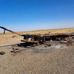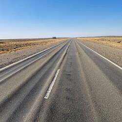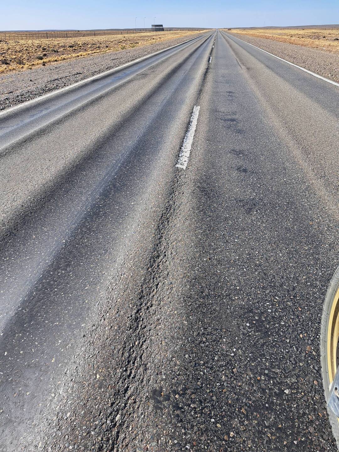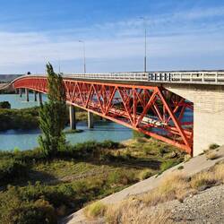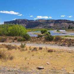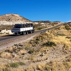Praktischer Weise steht Blue genau unter meinem Fenster. So kann ich fast alle Taschen durch das Fenster reichen. Nach dem Frühstück verabschiede ich mich noch von Diego und Leandro und es geht weiter Richtung Norden. Die Temperaturen steigen. Es sind ca. 27 Grad. Irgendwie hab ich mir am Fitz Roy doch einen Schnupfen eingefangen. Nichts dramatisches. Der Wind ist heute wieder in Topform und scheint alles geben zu wollen. Nun ja, die Umgebung ist halt Steppe. Alles ist vertrocknet. Dieser Umgebung würde etwas Farbe gut tun. Nur etwas grün und paar Blumen und schon sieht die Welt hier anders aus. Guanacos und Nandus haben sich der Natur hier angepasst. Und zum Bild gehören auch Plastikflaschen gefüllt mit heller bis dunkler gelbbrauner Flüssigkeit. Ja, hier fahren viele LKW. Alles klar? So verbringe ich den Tag im monotonen Klang von Blues Gesang. Der aber bei den Windgeräuschen kaum durchkommt. Nicht aufregend aber der Wind hält einen in Schräglage. Auch zerfetzte Reifen findet man häufiger. Oder auch einen ausgebrannten Auflieger. Bei einem Tankstopp fragt mich ein Pärchen ob sie ihren Aufkleber an den Alukoffer anbringen dürfen. Der ist klein. OK. Nach 360 KM ist in Fitz Roy