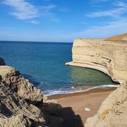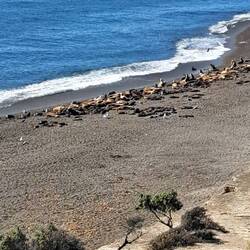 Es treibt mich weiter auf der RUTA 3 Richtung Norden. Vorher aber noch entspannt Frühstück und packen. Es bleibt dabei, hier im Süden herrscht permanent der Wind. 24/7 Online. Das bedeutet im Schnitt 20 bis 45 KM/h Wind mit Böen zwischen 50 und 85 KM/h. Ich bekomme oft den Hinweis mich vor dem Wind in Acht zu nehmen. Böen kommen tatsächlich unverhofft und sind wie Backpfeifen. Manchmal als Kombi im Doppelpack links/rechts ausgeführt oder hinterhältig wenn nur eine Hand am Lenker ist. Vorhersehbar aber dennoch tückisch sind LKW im Gegenverkehr. Nur als Rückenwind wird der Wind sympathisch. Der Verbrauch kann unter ungünstigen Umständen bis zu 50 % ansteigen. Kurz vor Caleta Olivia verläuft die RUTA 3 parallel zum Meer. Und hier besuche ich eine Kolonie Seelöwen. Man kann ziemlich dicht an diese Tiere heran aber mir ist ein gewisser Sicherheitsabstand lieber. Permanent kommen weitere Tiere angeschwommen. Zum Abschluß verabschiedet man sich mit der "Gib-5-Flosse". 😉 Noch ein Zwischenstopp an einer mit Muscheln bedeckten Küste und in einer größeren Stadt Namens Comodoro Rivadavia ist heute nach ca. 180 KM früh Schluß. Ich checke für 5000 Pesos in ein Hotel mit Hinterhof für Blue ein. Stadtspaziergang zum Hafen. Mit anderen hier am Strand auf das ansteigende Wasser warten. Gleichzeitig auf der Kaimauer sitzend den Blog schreiben und chillen. Es ist wieder Temparaturmäßig Sommer und trocken. Bis morgen.Lue lisää