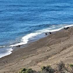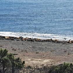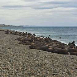 Früh morgens geht es los zum nördlichsten Punkt der Insel. Dieser Ort ist die Heimat der Seelöwen und Seelefanten. An diesem Tag herrscht lebhaftes Treiben am Strand . Der Kindergarten ist flügge und tobt in den Wellen. Ihre Rufe erinnern an Ziegen. Hier gibt es auch Orcas, die letzte Sichtung war vor 5 Tagen. Hauptsächlich 2 Stunden vor bis 2 Std. nach Hochstand der Flut kommen sie und ernähren sich durch die Technik des absichtlichen Strandens von Seelöwen und Seelefanten. Wale bleiben weiter ausserhalb. Sonnenschein und sommerliche Temperaturen verschönern den Tag5Broscj. Viele sitzen auf mitgebrachte Campingstühle und warten auf das Erscheinen von Wal oder Orcas. Die Flut ist mehr als 2 Dtunden Stunden her. Ich verlasse diesen Punkt und will noch zu den anderen Miradoren. Dort sind die Pinguine fast alle fort, man sieht noch die Erdhöhlen. Auch die anderen Viewpoints sind fast verlassen. Von weitem sieht man noch Seelöwen. Der Punkt Delgado ist Privatbesitz und nicht mehr zugänglich. Es ist fast Abend und ich verlasse die Wellblechpiste. Ein Motorradfahrer winkt. Es stellt sich heraus, dass er kaum noch Benzin hat, kein Internet und unsicher ist ob es eine Tankstelle im Ort gibt. Er folgt mir bis zur Zapfsäule und bedankt sich. Dann kommen seine Freunde. Alle kommen aus Chile und wollen nach Ushuaia. Abschiedsfoto und ich entschließe mich die Insel heute Abend noch zu verlassen. Ich fahre sogar bis Trelew bzw. Gaiman zum Feuerwehrcampingplatz. Die Tage werden kürzer. Es ist bereits dunkel als ich das Zelt aufbaue. Von hier geht es wieder zu den Anden. Ach ja, das erste Foto ist nur von einem Ausstellungsbild abfotografiert.Lue lisää
